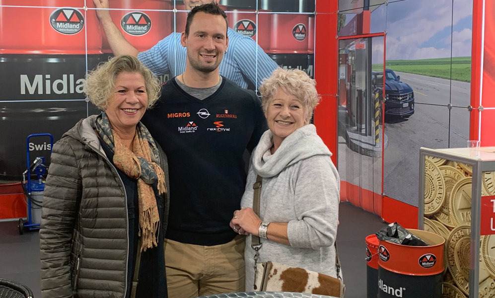 Midland-Botschafter Kilian Wenger unterstreicht die Schweizer Herkunft von Midland: Seine Werte «bodenständig, fair und bescheiden» decken sich mit jenen des Schweizer Familienunternehmens, das in vierter Generation von der Familie Brack geleitet wird. An der transport-CH in Bern liess es sich der «König» nicht nehmen, seinen Fans bei Midland zur Verfügung zu stehen. Diese machten rege Gebrauch davon, liessen sich mit ihrem Idol ablichten und nahmen Autogramme mit.