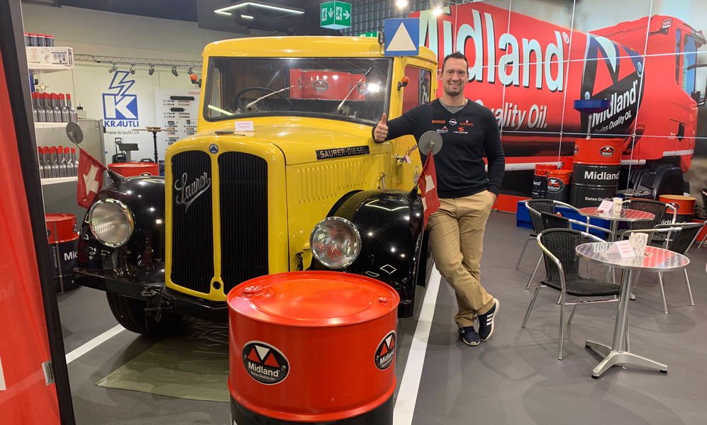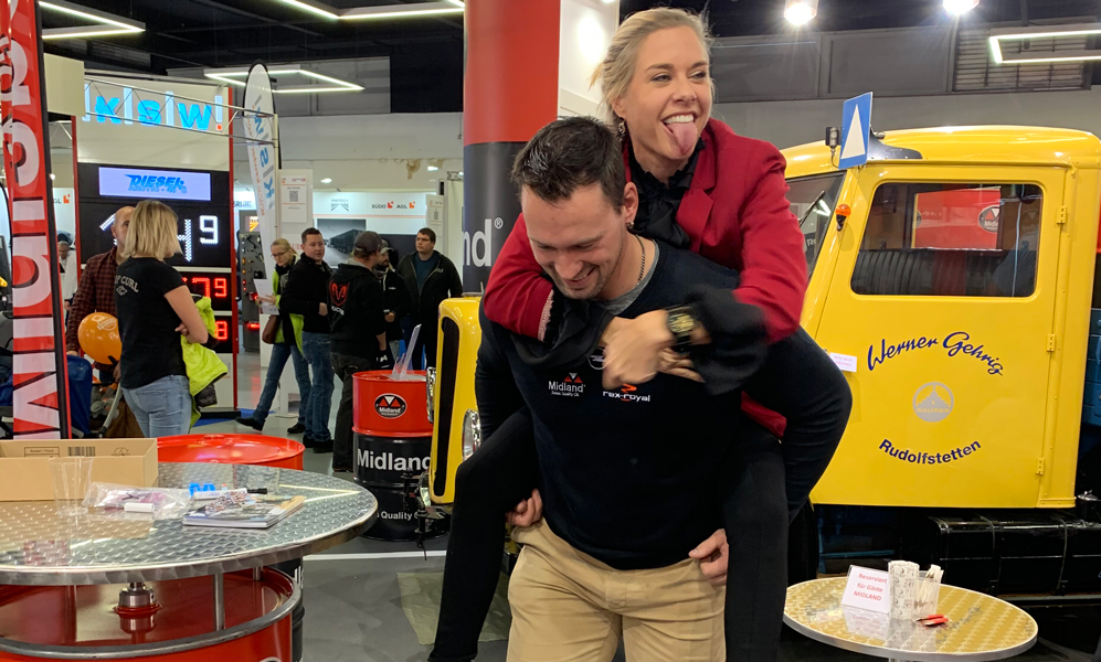 Im Zentrum standen am Stand von Midland allerdings die Produkte und Dienstleistungen für die Transport-branche. Im eigens für sie geschaffenen TRANS POOL-Verbund profitieren die Transportunternehmen von vielen Vorteilen. Das Midland Team zeigte auch die Vorteile der modernen Leichtlauföle Midland Nova 5W-30 und Midland Synqron Diesel 5W-30 auf, mit denen sich im realen Betrieb Emissionen reduzieren und Kraftstoff einsparen lassen. Und das ohne bei den verlängerten Ölwechselintervallen Abstriche zu machen.